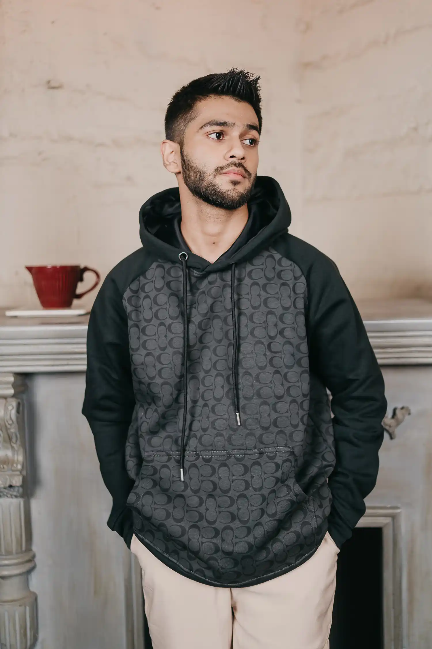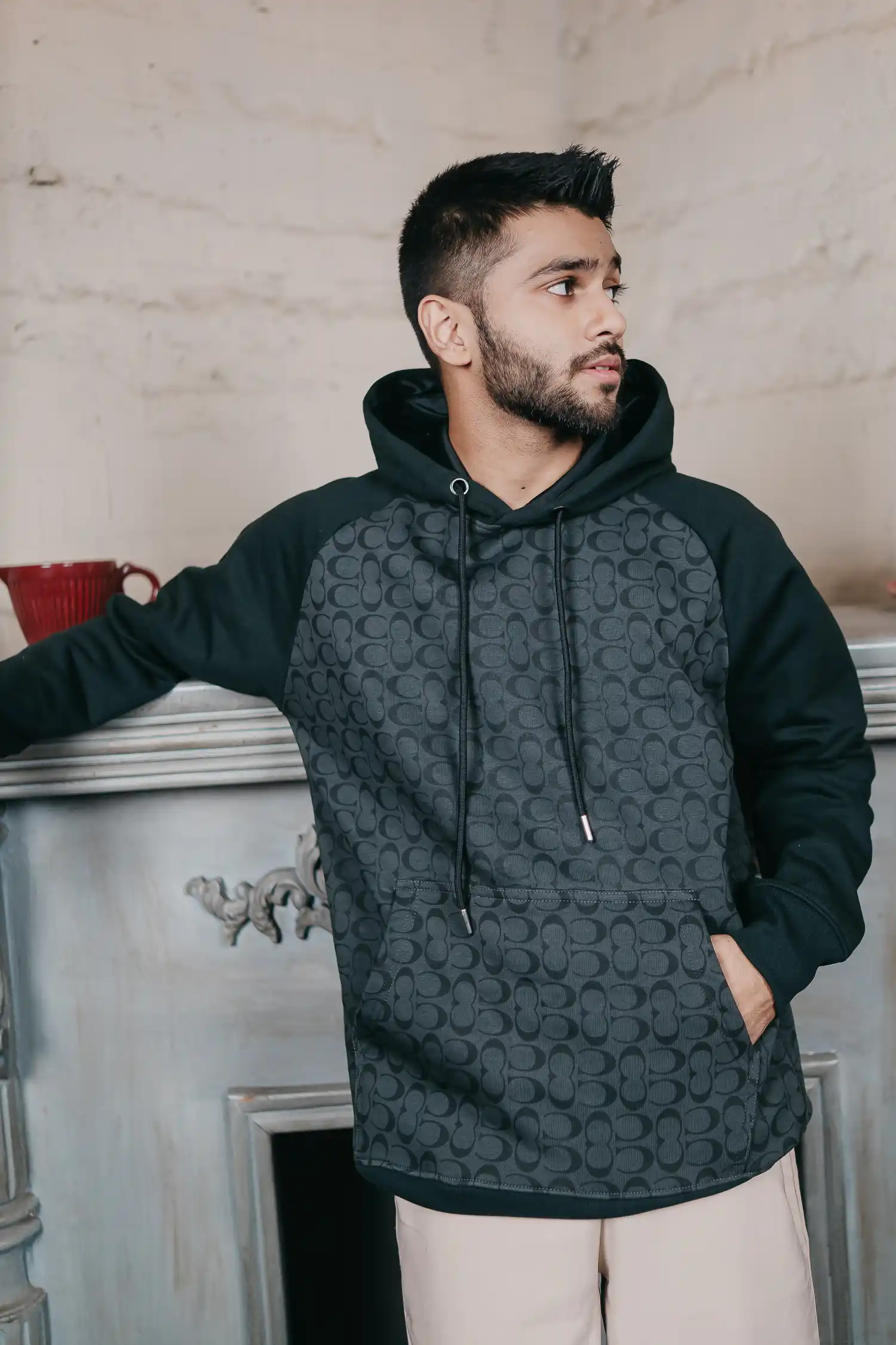 Anomos All Over Printed Reglan Hoodie- Dark Grey