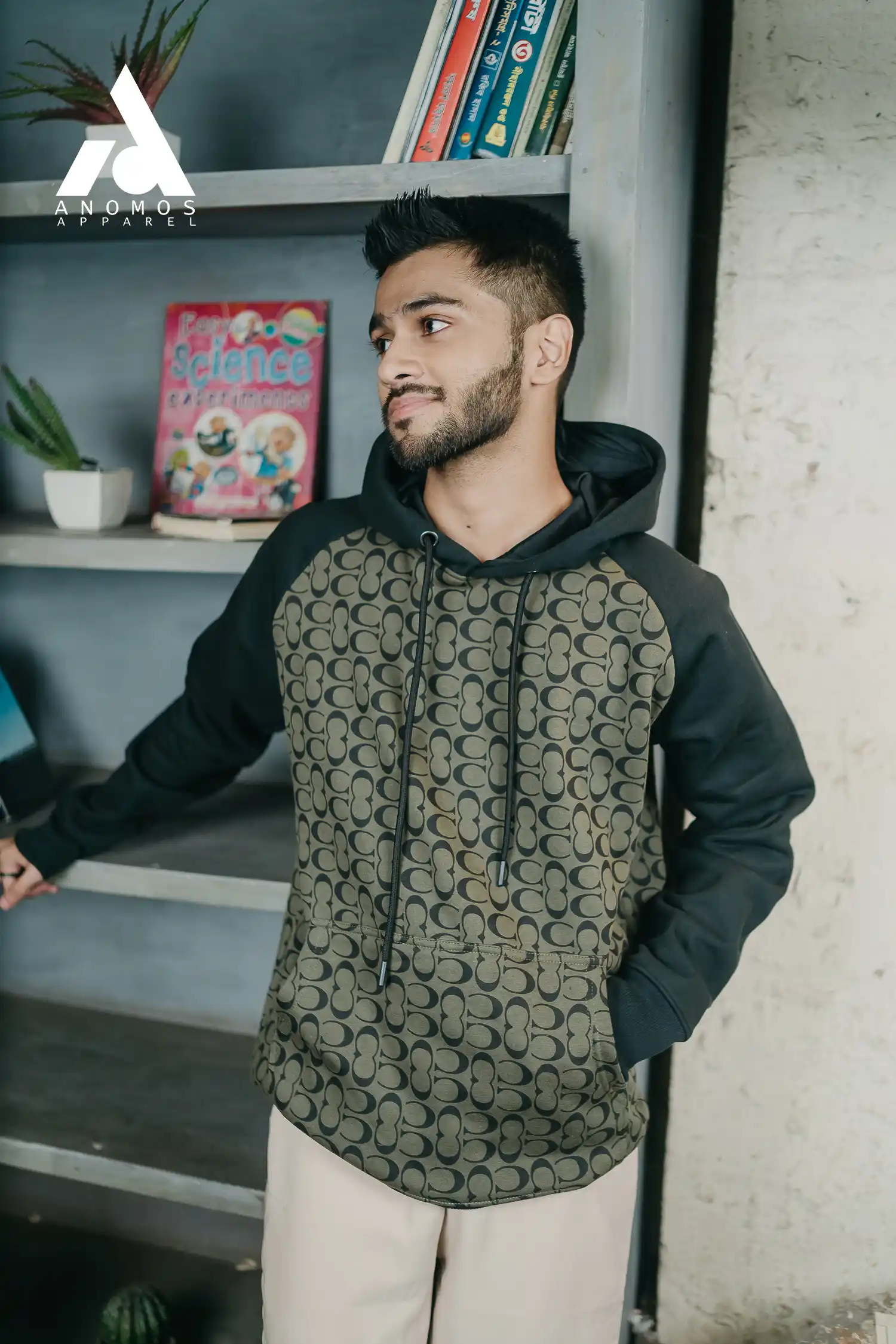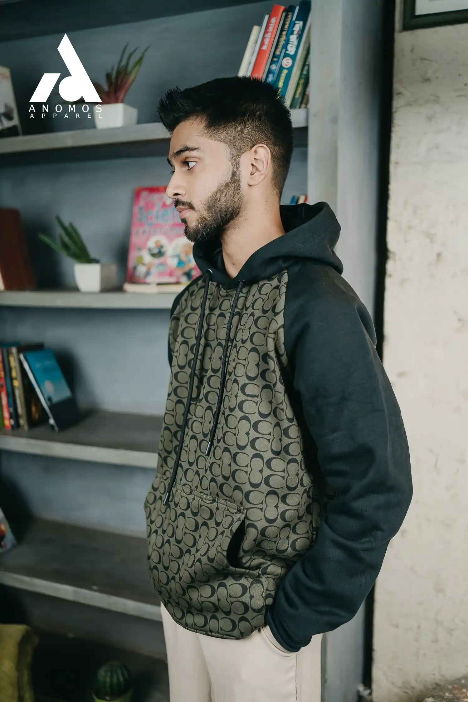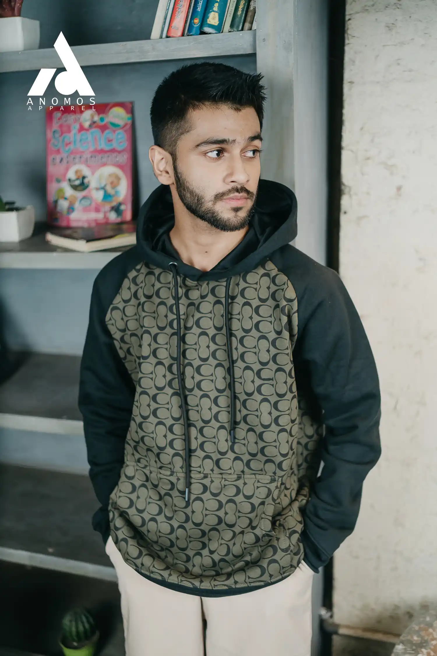 Anomos All Over Printed Reglan Hoodie- Dark Olive