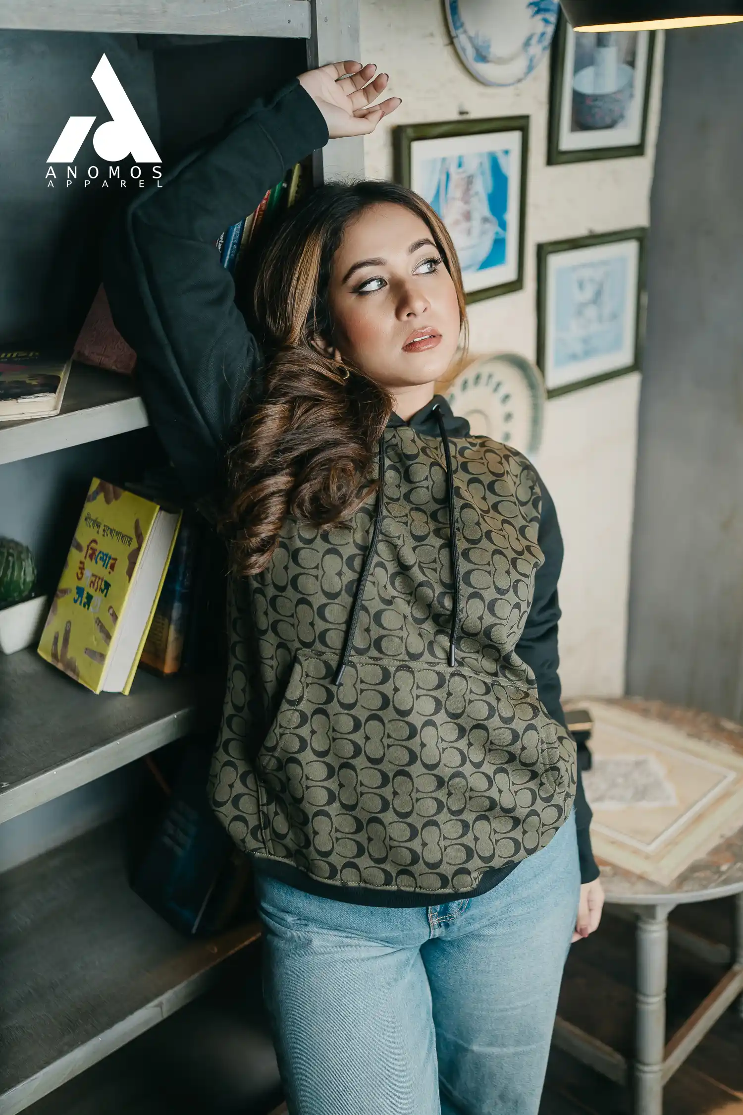 Anomos All Over Printed Reglan Hoodie- Dark Olive