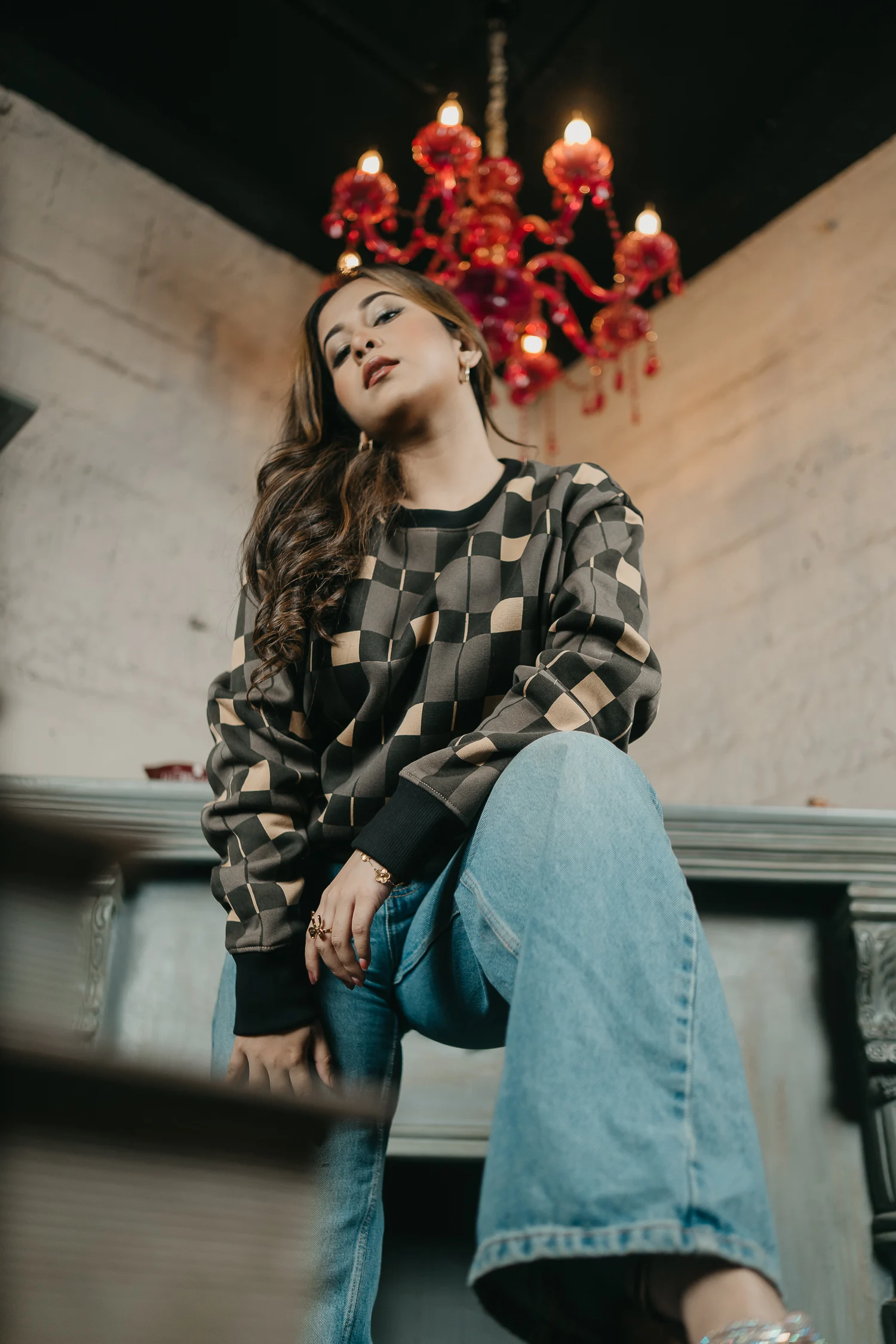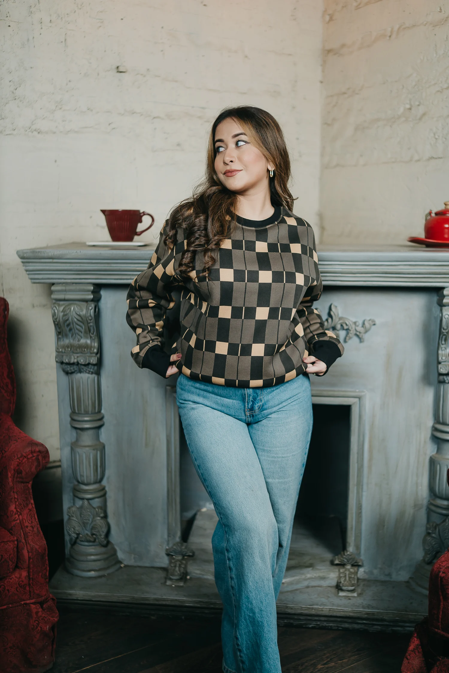 Anomos Premium Oversized All-Over Printed Sweater – Khaki