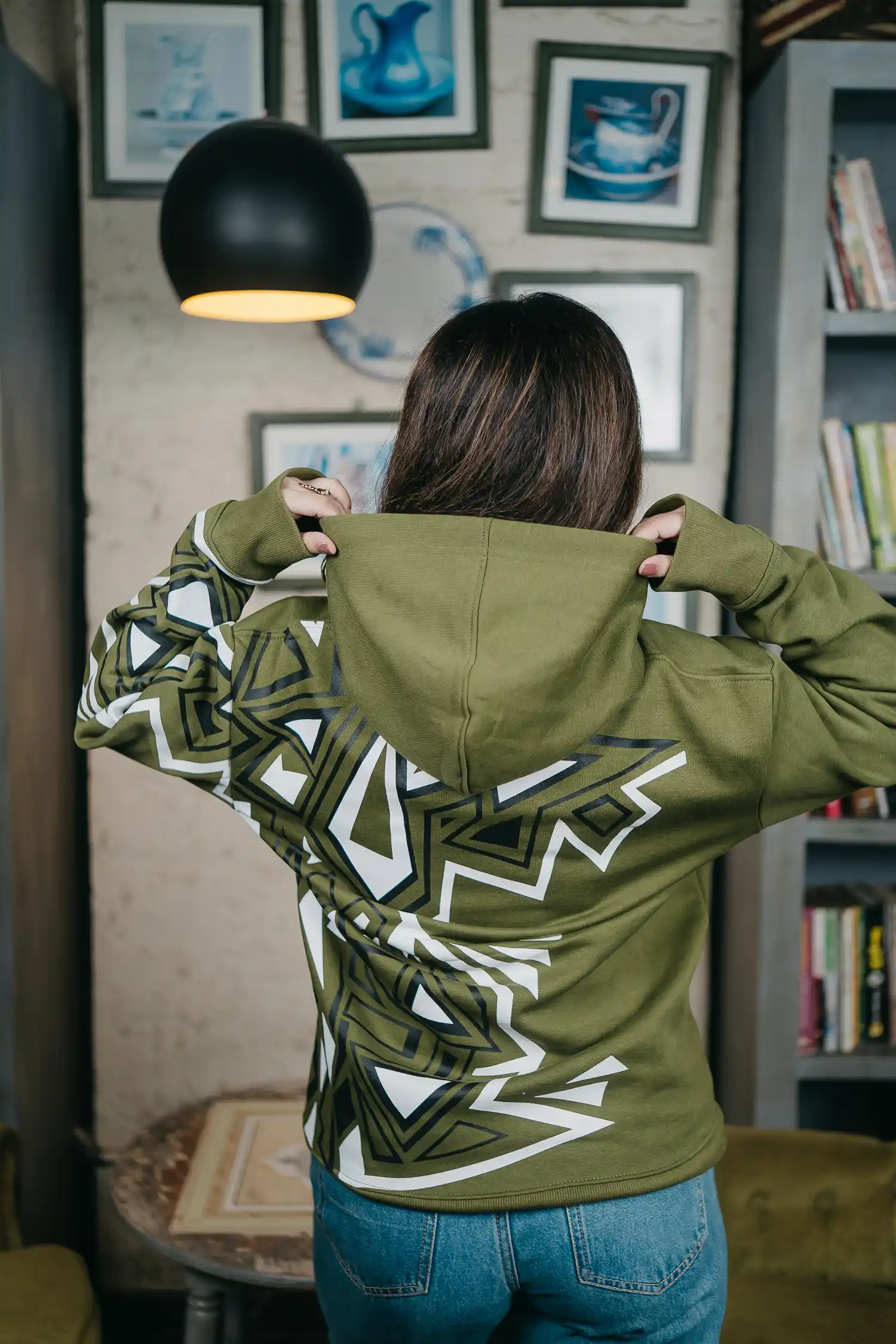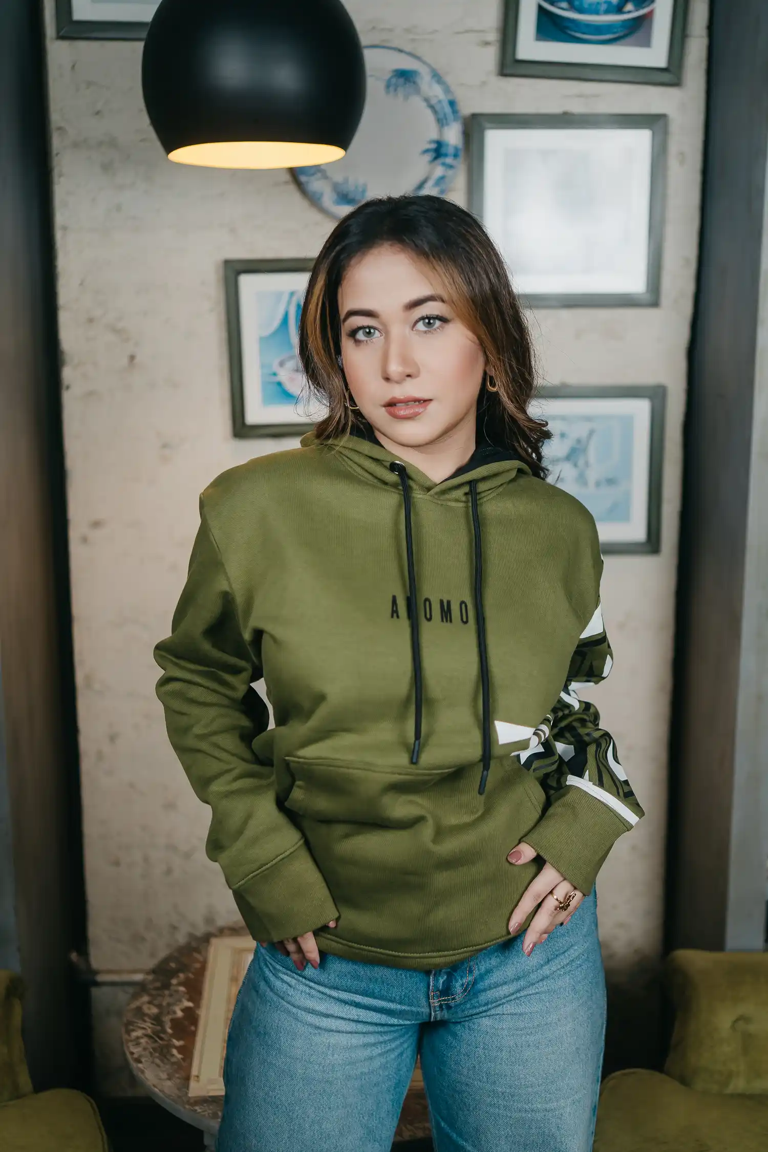 Anomos Premium Oversized Rubber Printed Unisex Hoodie- Olive Green