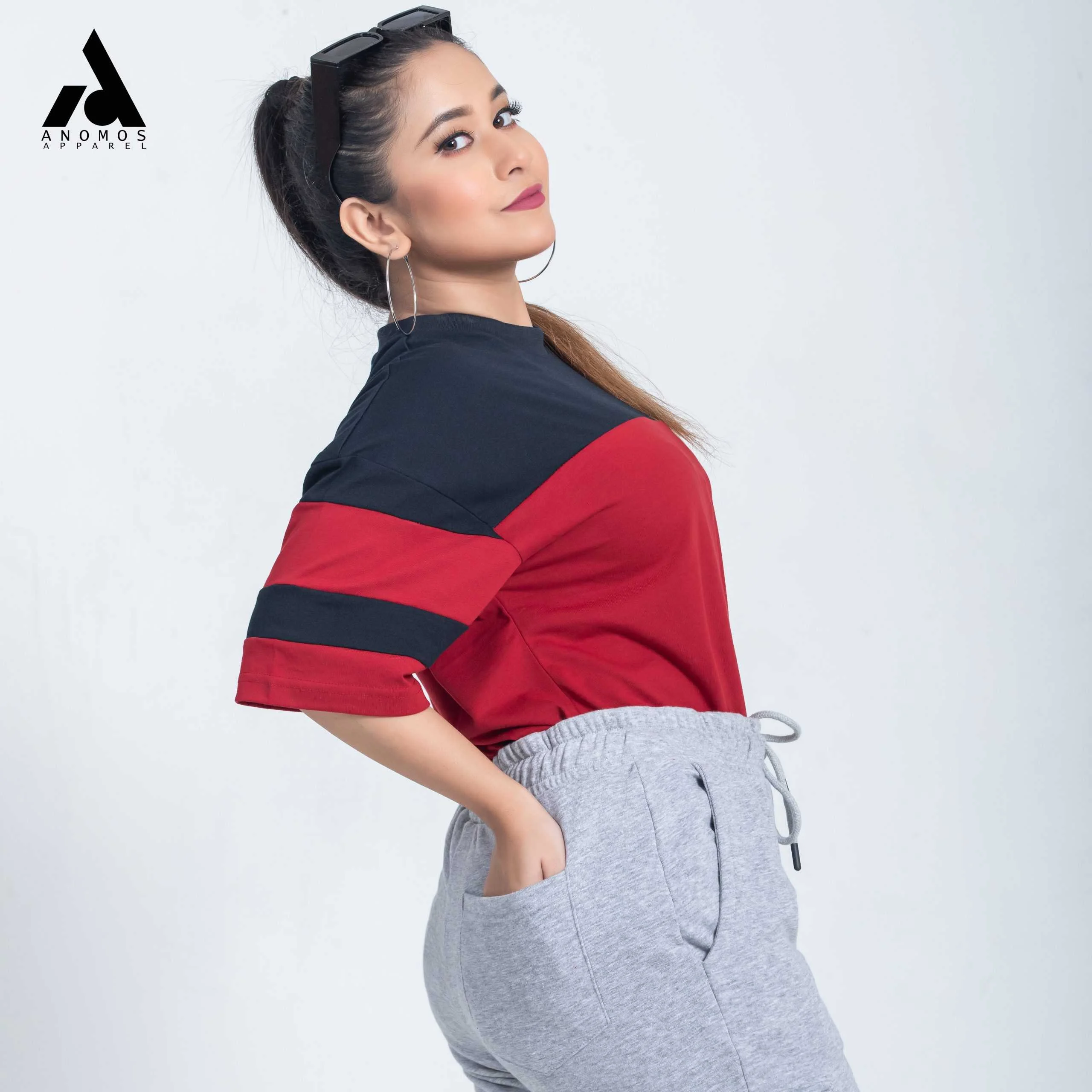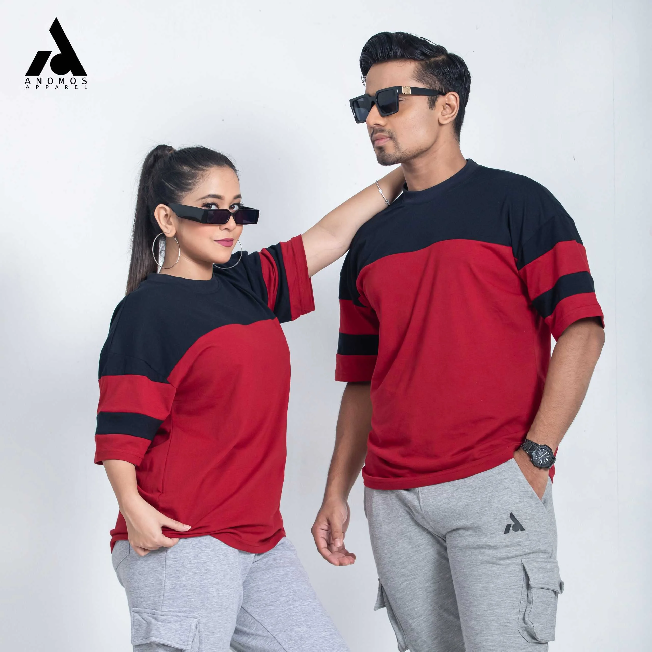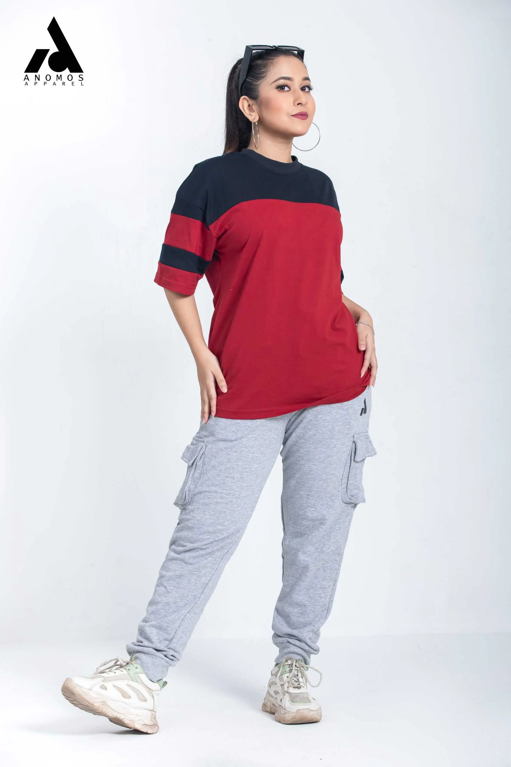 Premium Chest Contrast Drop Shoulder t-shirt | Red