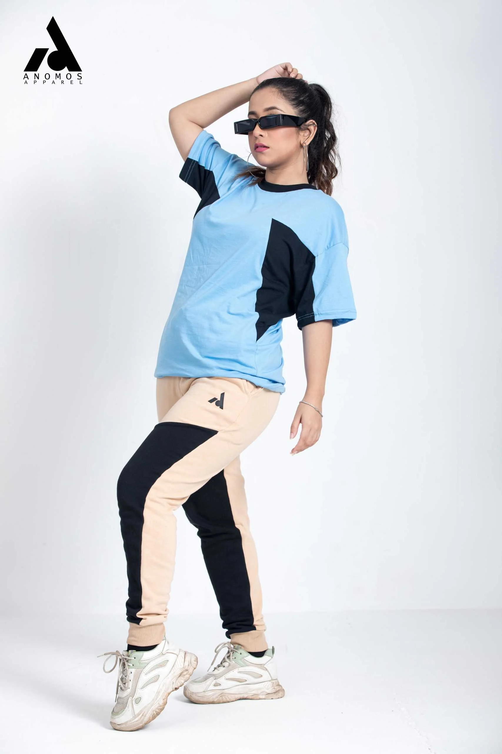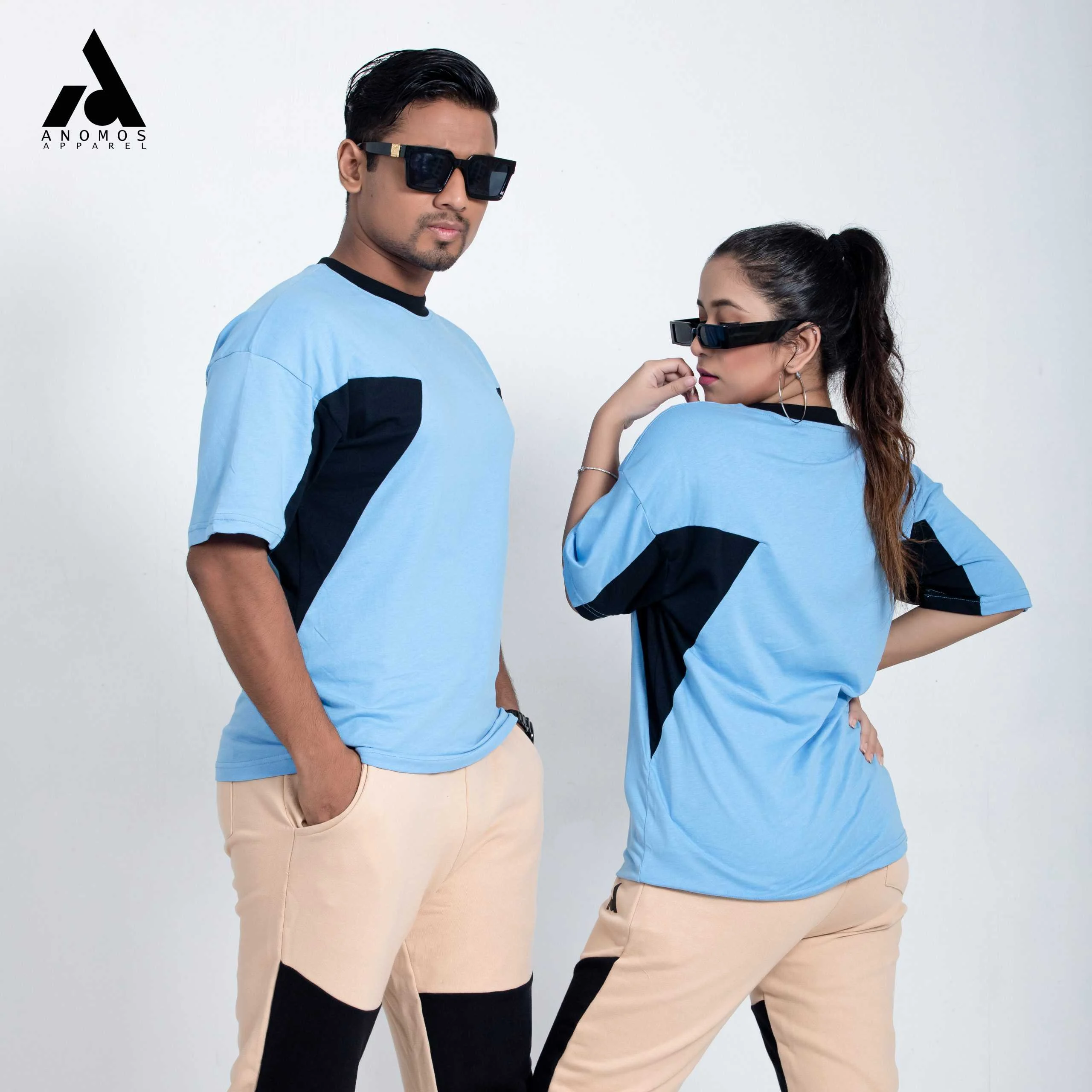 Be the first to review “Premium Triangle Contrast Drop Shoulder t-shirt | Sky Blue”