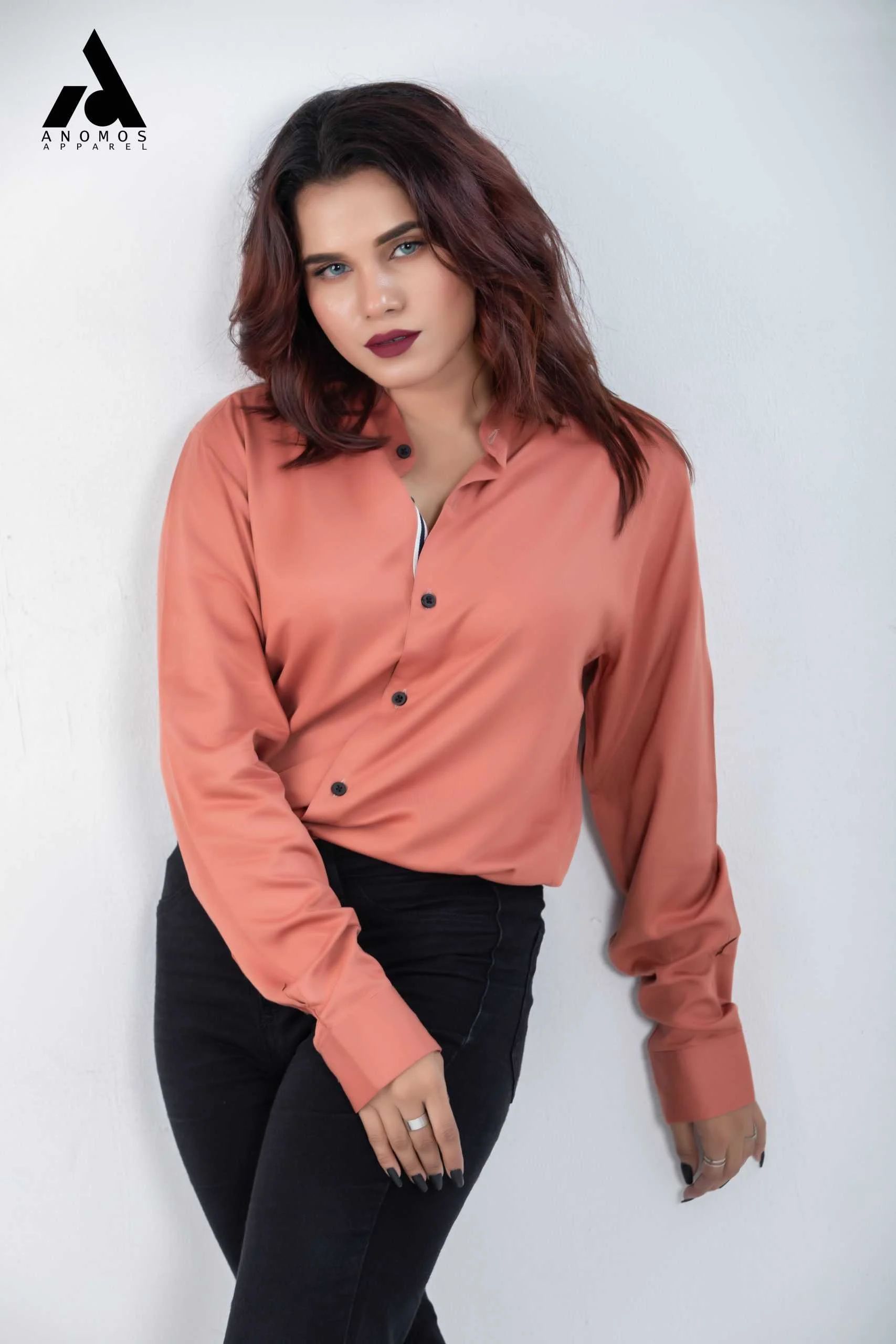 Unisex Peach Band Collar Shirt | Mandarin Collar