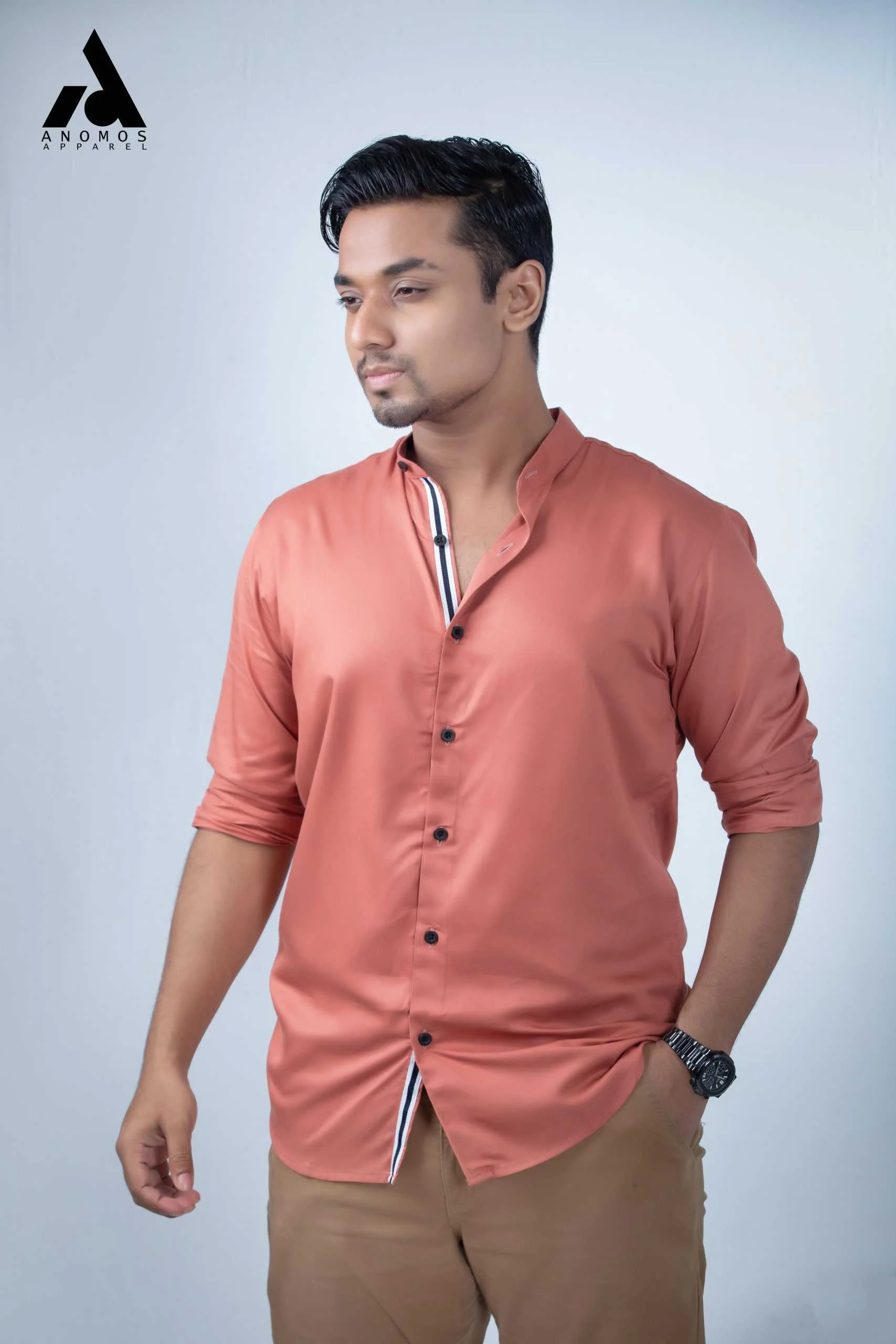 Unisex Peach Band Collar Shirt | Mandarin Collar